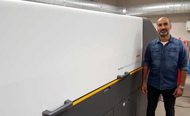 Gründer und Inhaber von Alpha Print Hassan Mohammadian vor der neuen Kodak Nexpress ZX 3900.