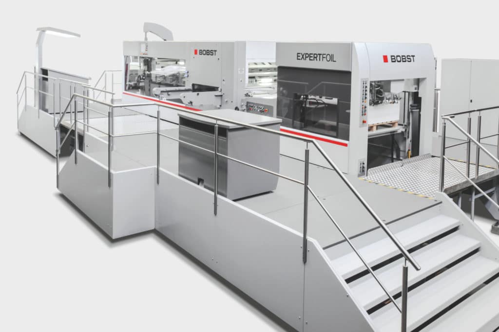Das Bild zeigt eine Prägefoliendruckmaschine des Typs Expertfoil 142 aus dem Hause Bobst.