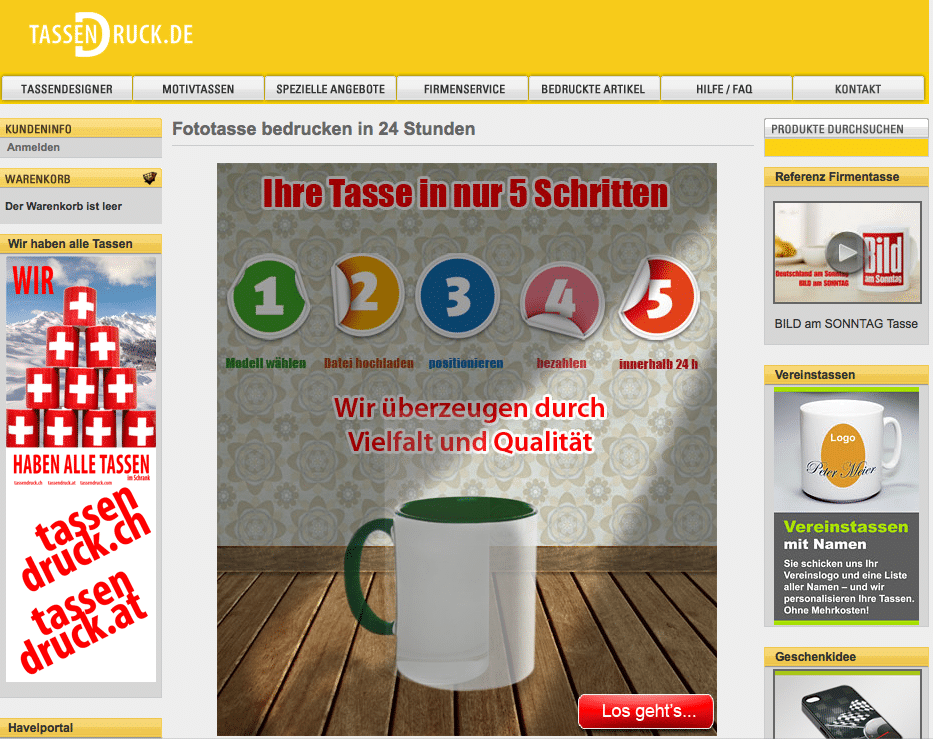 Mit dem Internetshop Tassendruck verkaufte Jacob 2011 rund 70 000 Tassen.