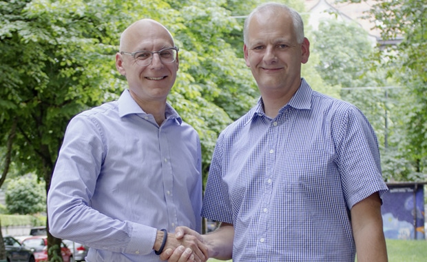 Dr. Jörg Sensburg, Geschäftsführer Igepa Group (l.), und Jens Meyer, Geschäftsführer Print-Xmedia Süd GmbH, beschließen die PSO‐Zusammenarbeit.