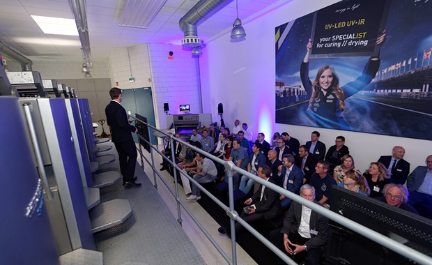Gemeinsam mit 45 namhaften Ausstellern und Branchenpartnern informierte der Veranstalter IST Metz vom 15. bis 18. Mai rund um UV- und LED-UV in Print und Industrie. 920 Gäste aus 33 Ländern empfing der Nürtinger Maschinenbauer dieses Jahr und knackt damit die bisherigen Höchstwerte aus dem Jahr 2015 (670 Gäste). Die Veranstaltung umfasste mehrere Druckvorführungen und Impulsvorträge, Firmenbesichtigungen, Laborführungen sowie verschiedene Themeninseln zu Low Migration, LED-Bogen- und Rollenanwendungen und Industrieanwendungen.