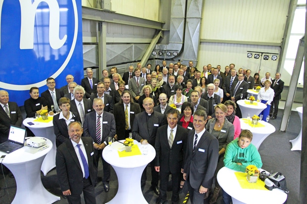 In der Druckhalle feierten Ende September mehr als 100 Gäste den 150. Geburtstag von Mayer & Söhne und die neue Druckmaschine.