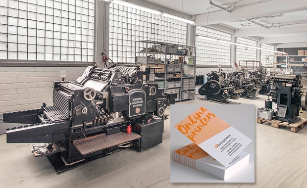 Auf dem Maschinenpark von Letterpresso entstehen künftig auch zahlreiche Visitienkarten im Letterpress-Verfahren, die über die Online-Druckerei "diedruckerei.de" bestellt werden.