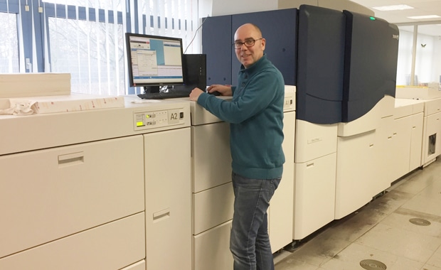 Michael Köhler, Abteilungsleiter Druckvorstufe und Digitaldruck bei Sattler Direct Mail an der neuen Xerox iGen5.
