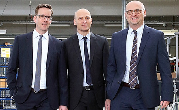 Das Bild zeigt den Vorstand der Technotrans AG (v.l.): Dirk Engel (Finanzvorstand), Henry Brickenkamp (Sprecher des Vorstands) und Dr. Christof Soest (Vorstand Technik), der Ende Dezember 2017 das Unternehmen verlässt.