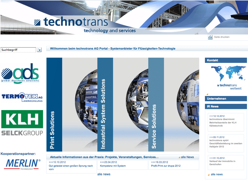 “Wir werden die Aktivitäten von Technotrans in Märkten jenseits der Druckindustrie in den nächsten Jahren mit Nachdruck auszuweiten. Dem Wachstumsmarkt Laser billigen wir dabei besondere Bedeutung zu”, so der Brickenkamp. “Unser Ziel, einen Umsatzanteil von 30% außerhalb der Druckindustrie zu erwirtschaften, werden wir aus heutiger Sicht bereits im Geschäftsjahr 2013 erreichen.”