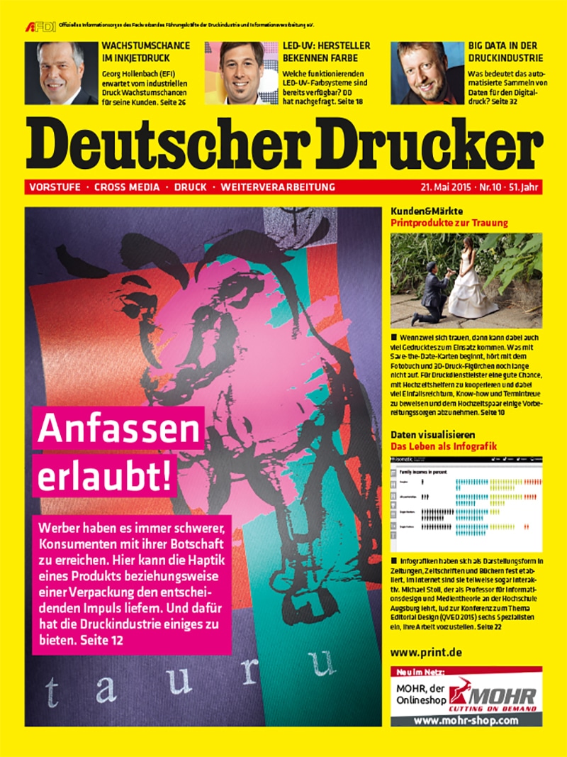 Megatrend Druckveredelung zum Anfassen: Haptik +++ Bedruckstoffe: Moderne Materialien +++ Big Data in der Druckindustrie +++ Wachstumschance im Inkjetdruck +++8,50 €