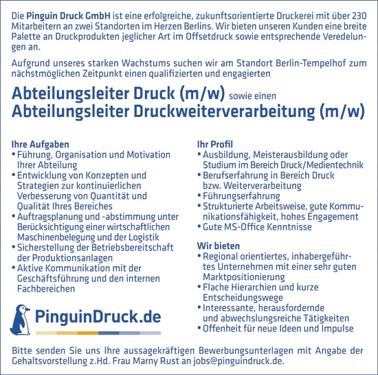 Abteilungsleiter Druckweiterverarbeitung (m/w)