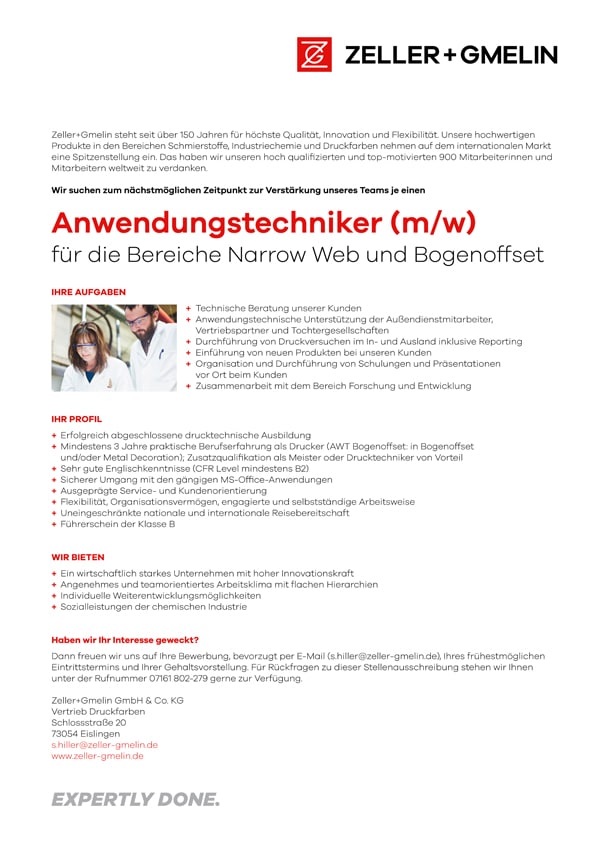 Anwendungstechniker (m/w) für die Bereiche Narrow Web und Bogenoffset