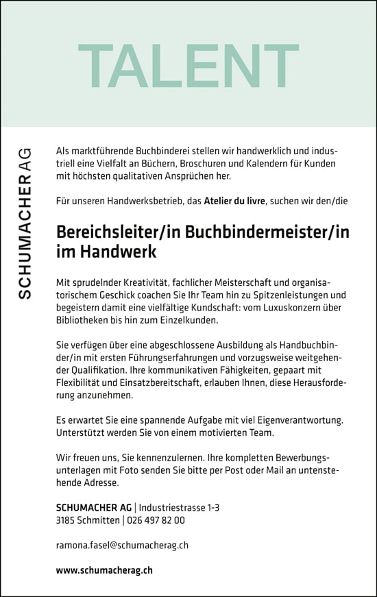Bereichtleiter/in Buchbindermeister/in im Handwerk