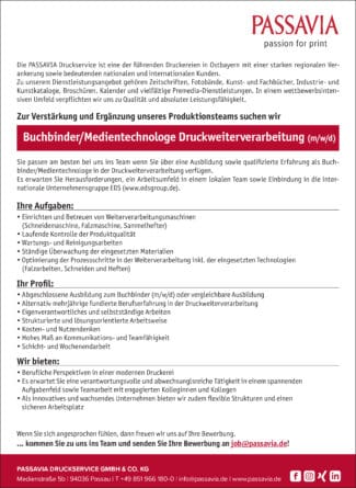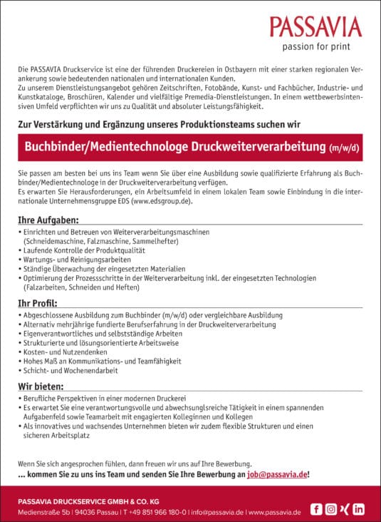 Buchbinder/Medientechnologe Druckweiterverarbeitung (m/w/d)