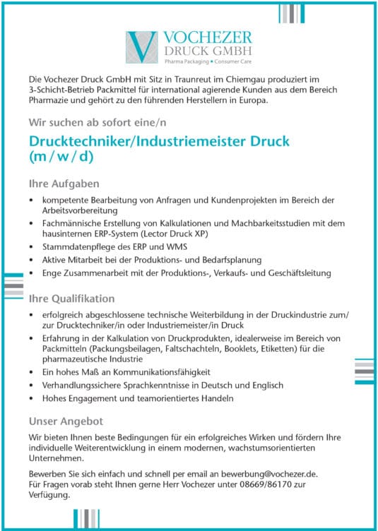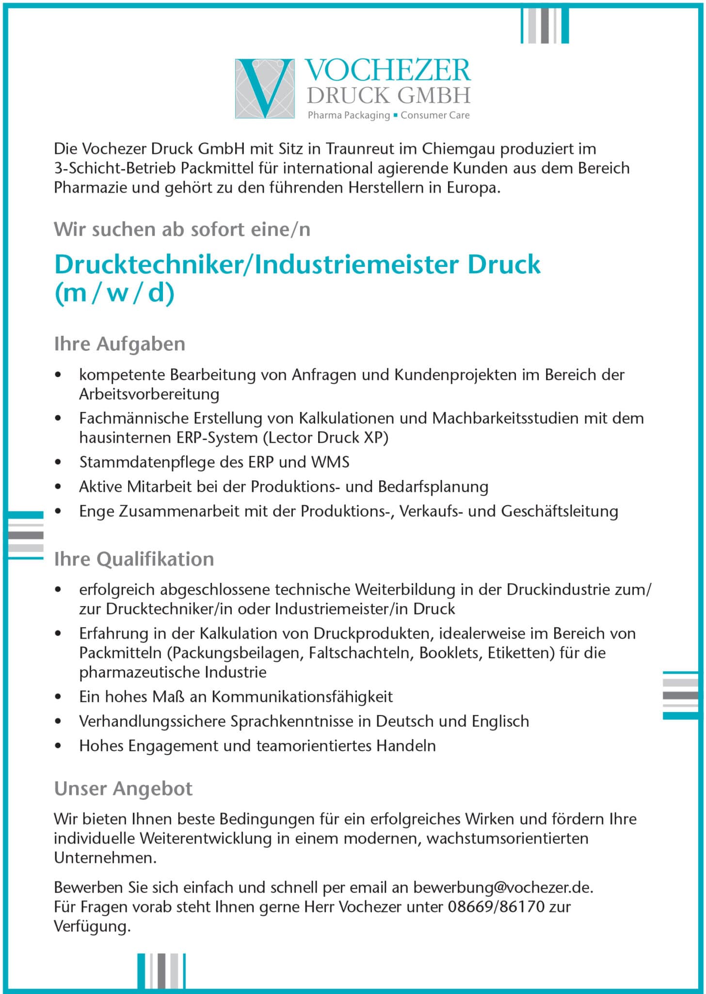 Drucktechniker/Industriemeister Druck (m/w/d)