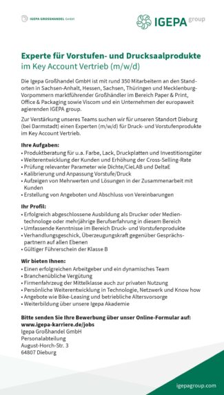 Experte für Vorstufen- und Drucksaalprodukte im Key Account Vertrieb (m/w/d)