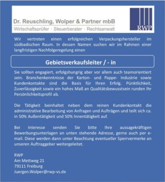 Gebietsverkaufsleiter / -in
