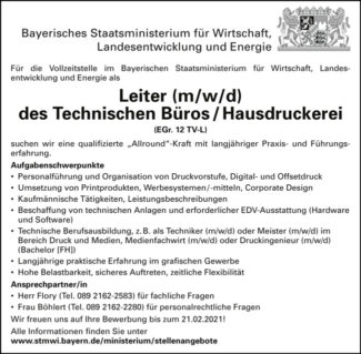 Leiter (m/w/d) des Technischen Büros / Hausdruckerei