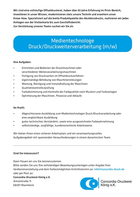 Medientechnologe Druck / Druckweiterverarbeitung (m/w)