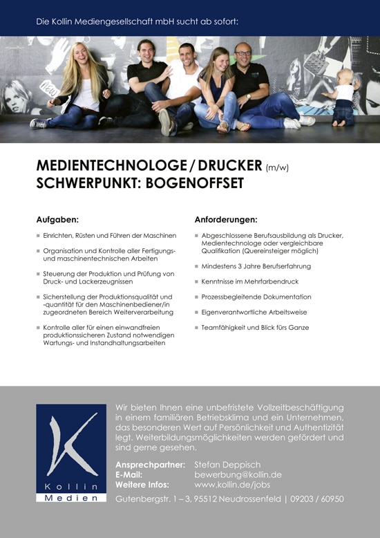 Medientechnologe / Drucker (m/w) Schwerpunkt: Bogenoffset