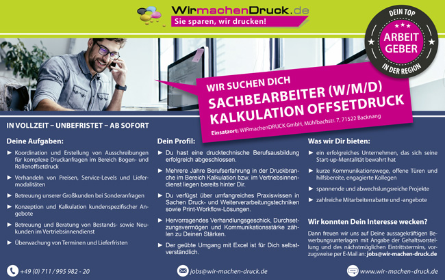 Sachbearbeiter (w/m/d) Kalkulation Offsetdruck