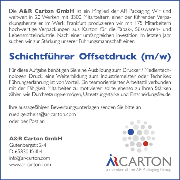 Schichtführer Offsetdruck (m/w)