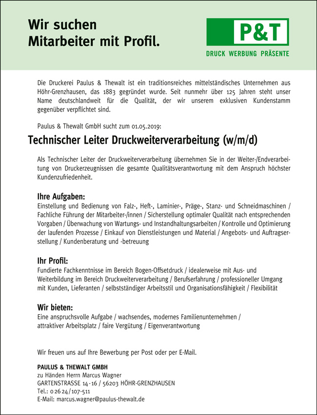 Technischer Leiter Druckverarbeitung (m/w/d)