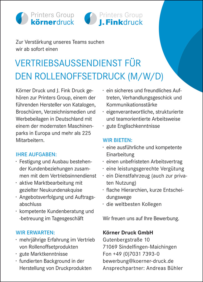 Vertriebsaussendienst für den Rollenoffsetdruck (m/w/d)