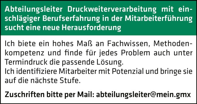 Abteilungsleiter Druckweiterverarbeitung sucht eine neue Herausforderung