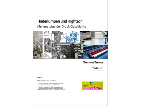 Seit mehr als 120 Jahren begleitet Deutscher Drucker die grafische Industrie als Informationsmedium. In dieser Zeit, aber auch schon lange davor, haben zahlreiche technische Entwicklungen die Branche weitergrbacht, teilweise sogar revolutioniert. Alle Meilensteine der Geschichte des Drucks im E-Dossier “Haderlumpen und Hightech”.